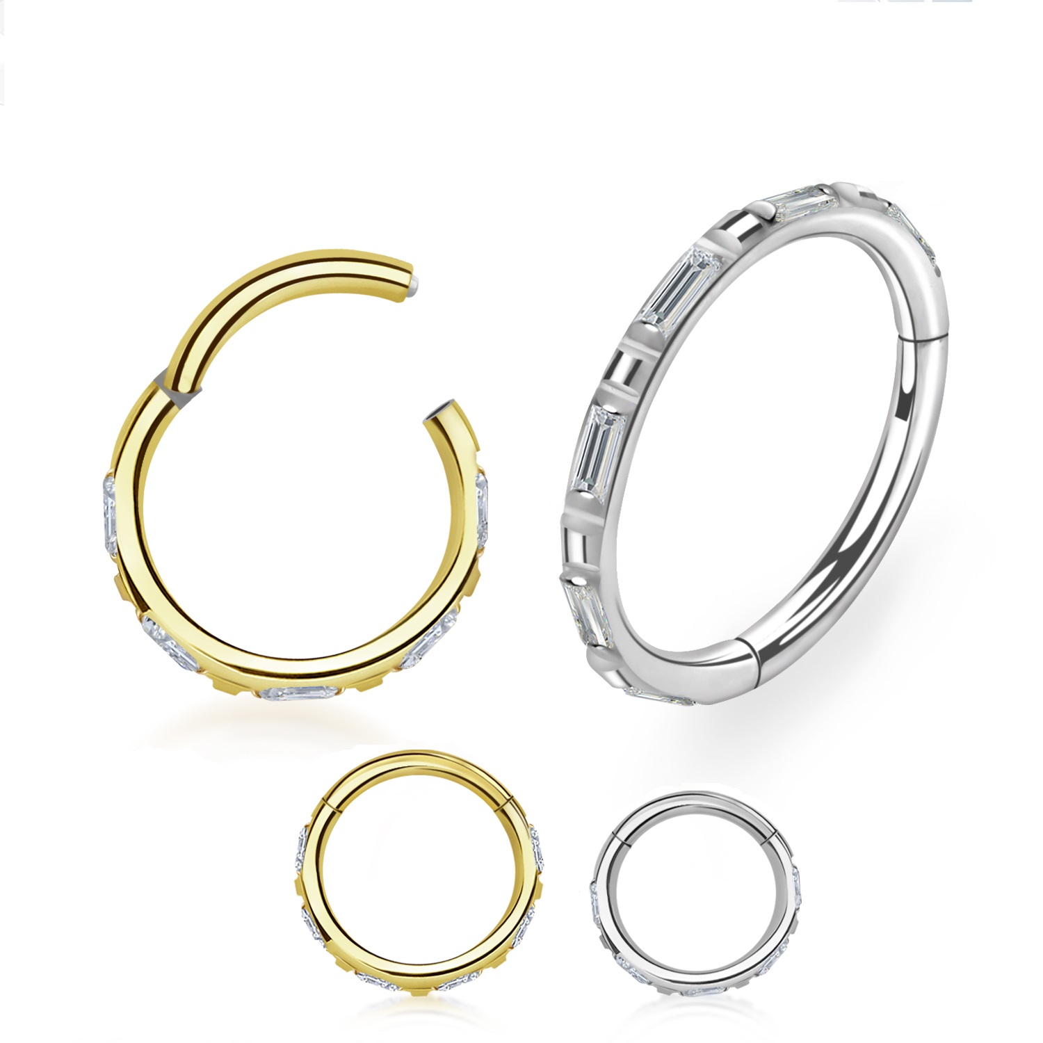 Il T Clicker Venere è il gioiello perfetto per chi desidera impreziosire il proprio look con eleganza e luminosità. Caratterizzato da un cerchio sottile con chiusura a click e decorato con zirconi di altissima qualità dal taglio smeraldo, questo clicker è pensato per chi ama distinguersi con stile, senza rinunciare alla sicurezza. Realizzato in Titanio G23 T6AL4V ELI ASTM F136, garantisce massima biocompatibilità, durata e un design senza tempo.