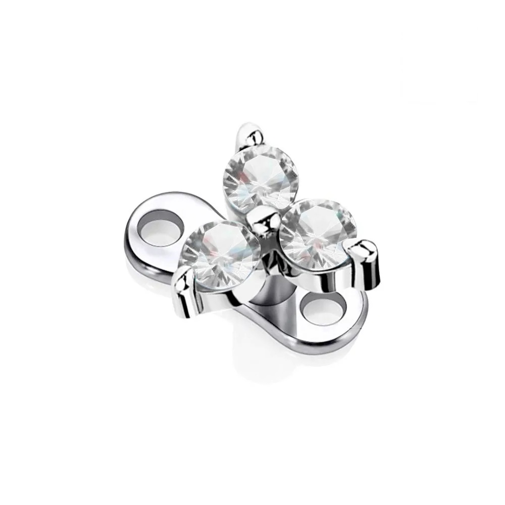 Il T Dermal Trifoglio è un gioiello raffinato e resistente, perfetto per chi desidera un tocco di luce e originalità. Il suo design a trifoglio, impreziosito da zirconi trasparenti, aggiunge un dettaglio elegante e discreto alla pelle, esaltandone la bellezza.