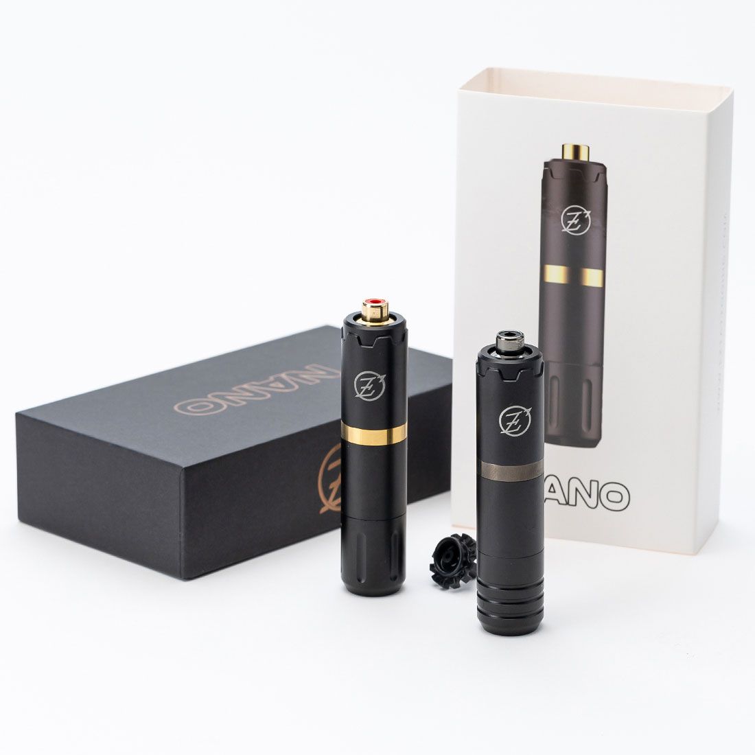 NANO è una macchina a tutto tondo con 3 corse (3,5 mm, 2,5 mm, 4,2 mm), distinto per il suo colore (lunghezza della corsa grigio 4,2 mm e lunghezza della corsa 3,5 mm dorata) e la corsa extra di 2,5 mm inclusa nella scatola consente al tatuatore di cambiare come vuole.