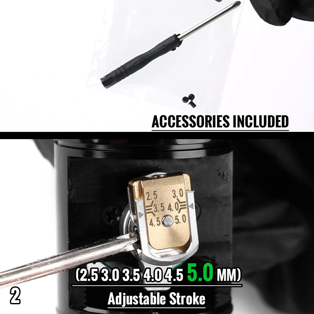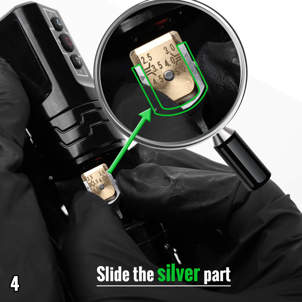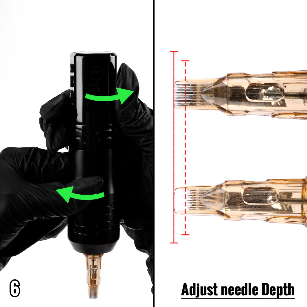 - Corsa regolabile da 2,5 a 5,0 mm – Sistema di regolazione avanzato a 6 livelli che consente di adattarsi a diversi stili di tatuaggio, dal linework fine al packing intenso.