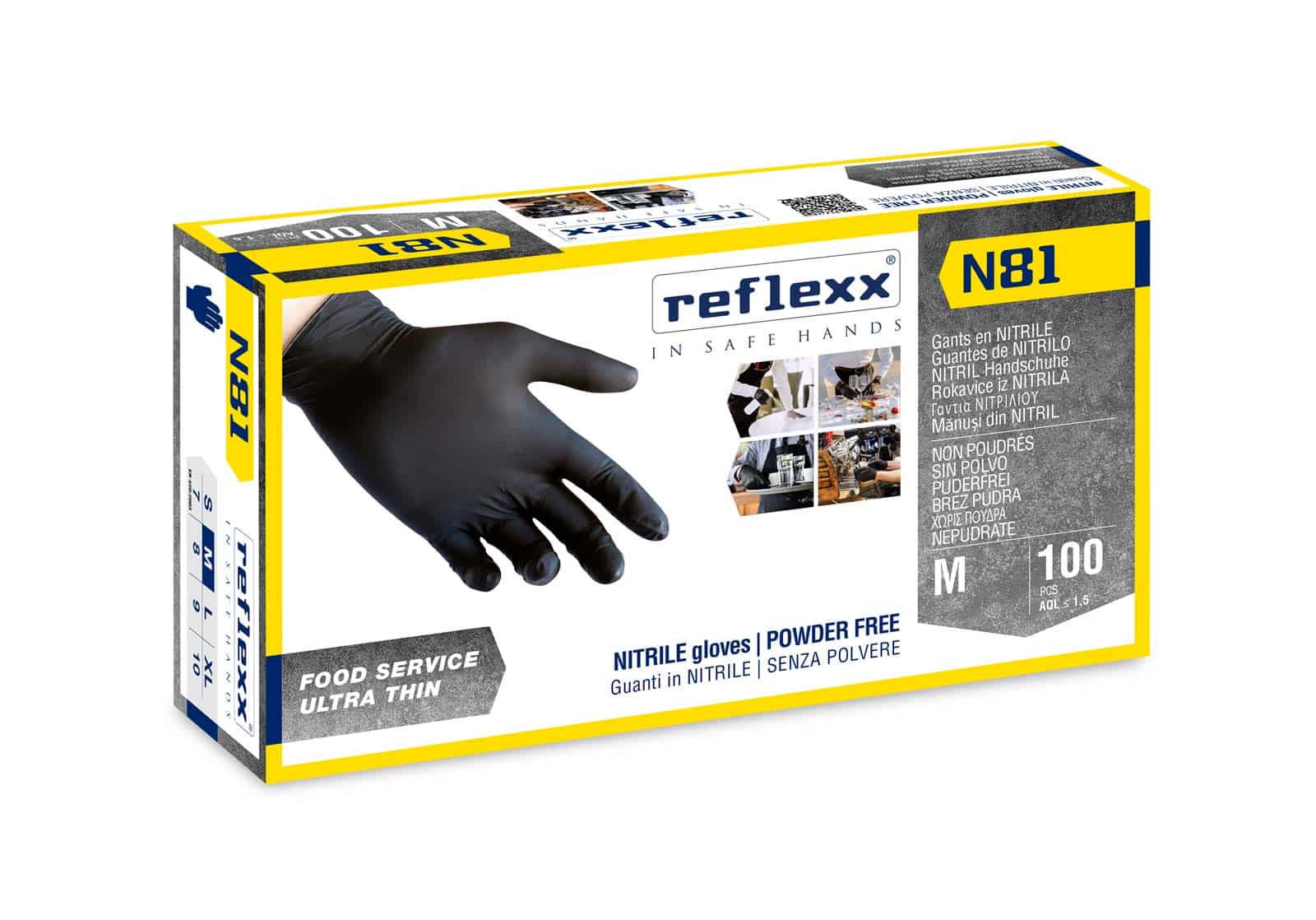 Guanti In Nitrile Neri Senza Polvere Reflexx N81 – gr. 3,2 (M)
