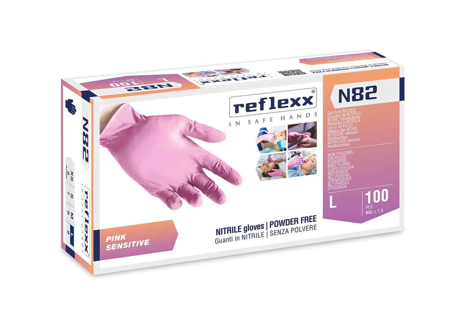 Guanto in nitrile rosa idoneo per l’utilizzo nei settori odontoiatrico, estetica, nails e percing, tattoo.