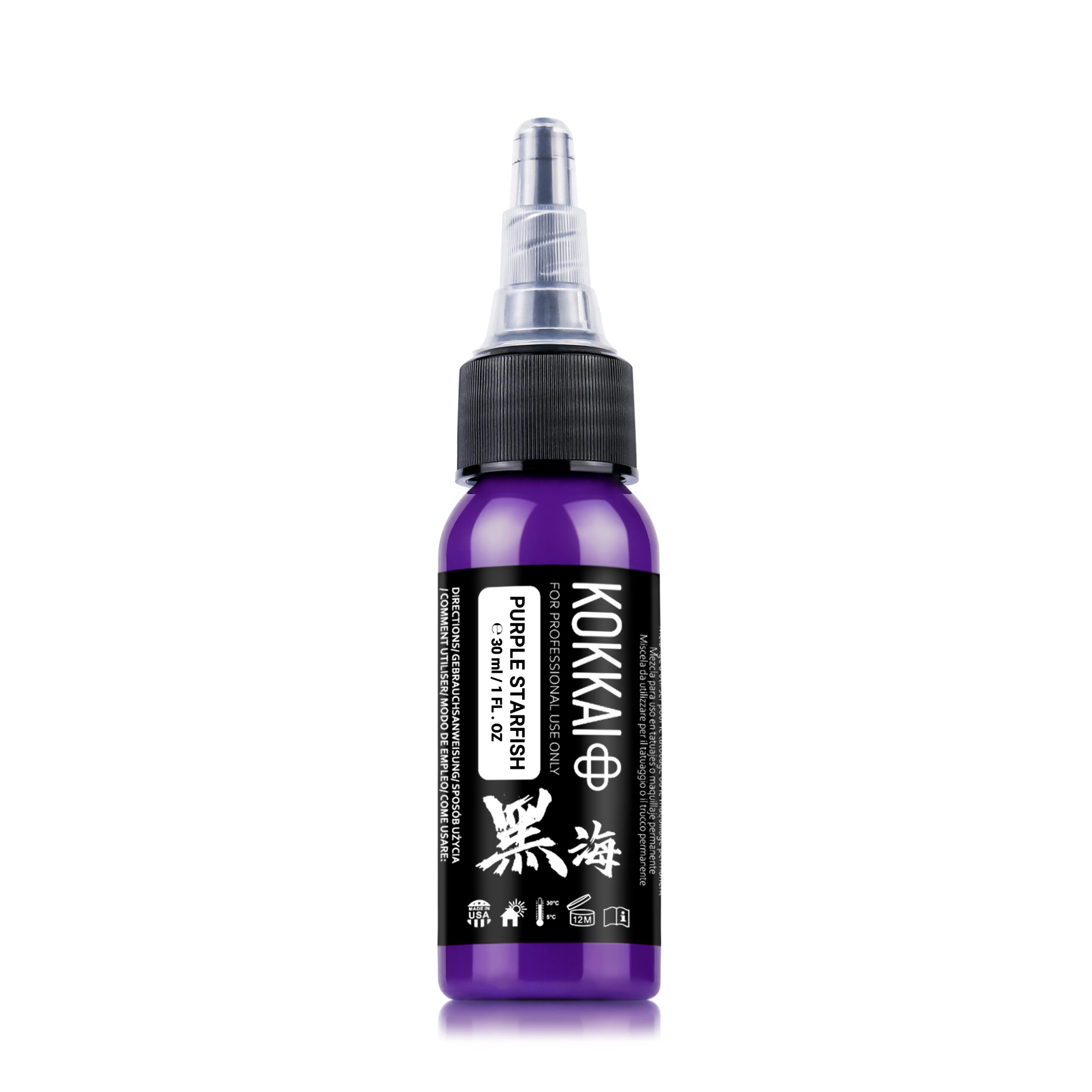Unisce le tradizionali tecniche giapponesi di produzione dell’inchiostro sumi con la moderna tecnologia per inchiostri da tatuaggio, creando un pigmento viola ricco e vibrante.