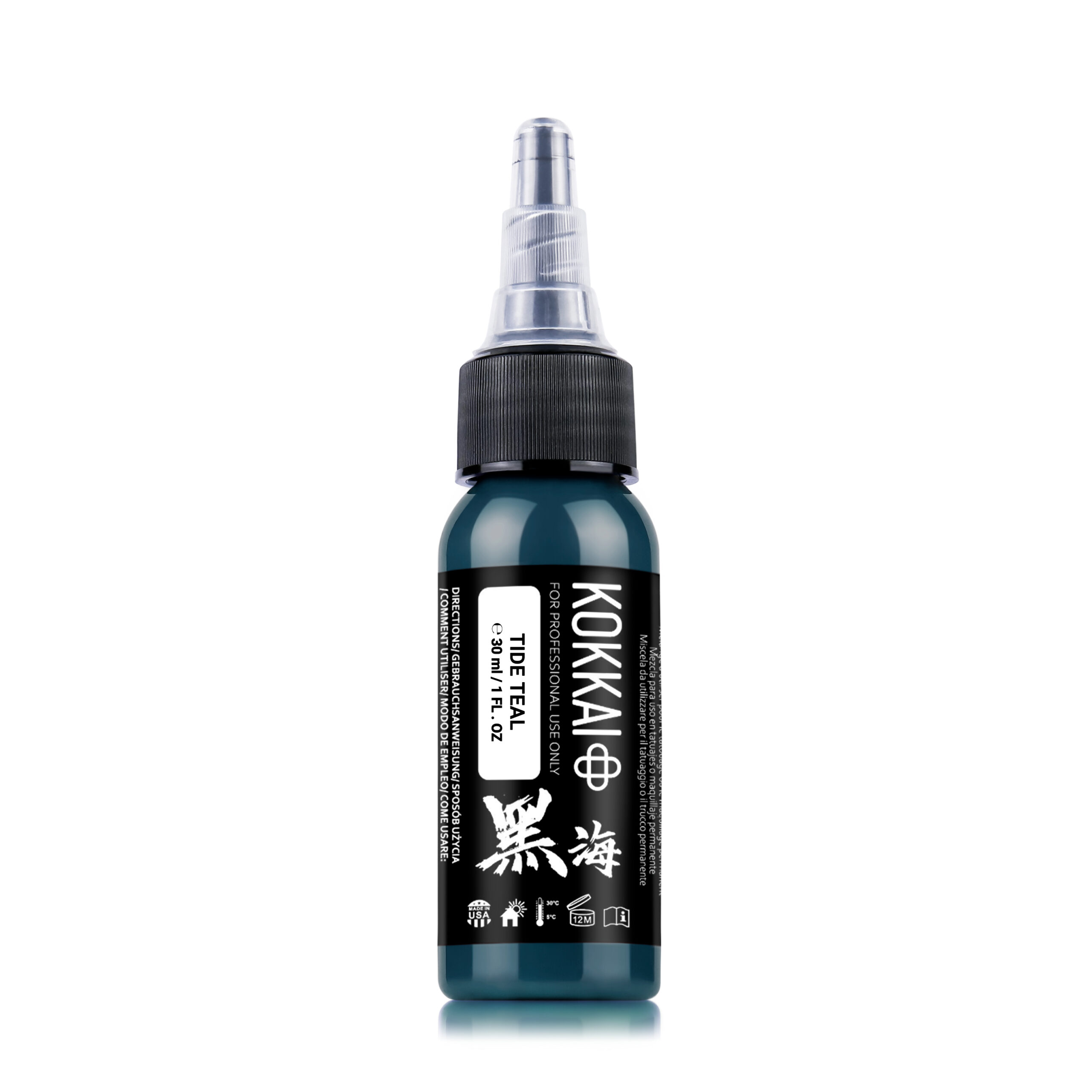 Unisce le tradizionali tecniche giapponesi di produzione dell’inchiostro sumi con la moderna tecnologia per inchiostri da tatuaggio, dando vita a un pigmento teal profondo e vibrante.