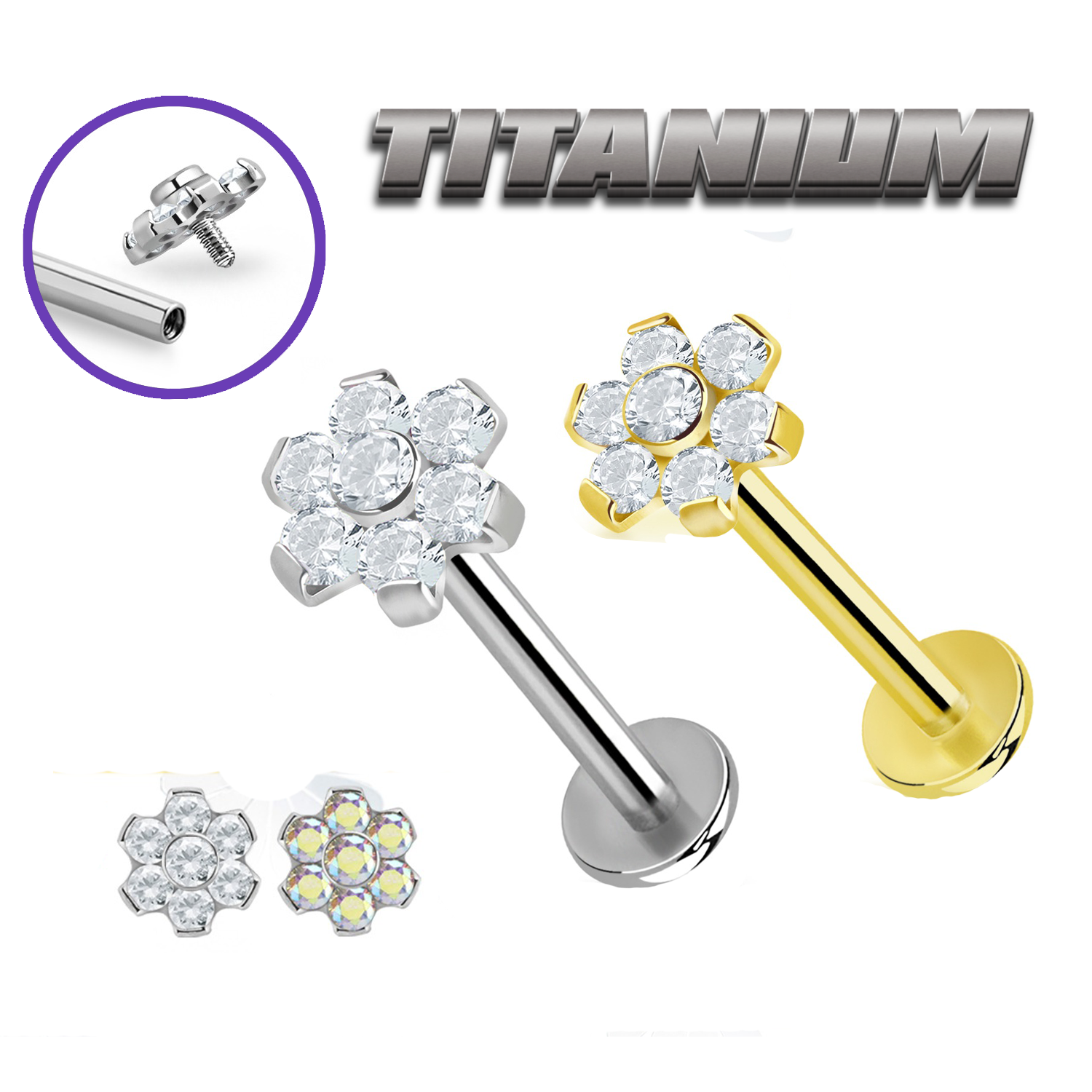 Il Labret con Top Margherita rappresenta l’eccellenza nel design e nei materiali. Realizzato in titanio ASTM F136 e arricchito con zirconi di grado superiore, questo labret brilla intensamente riflettendo la luce.