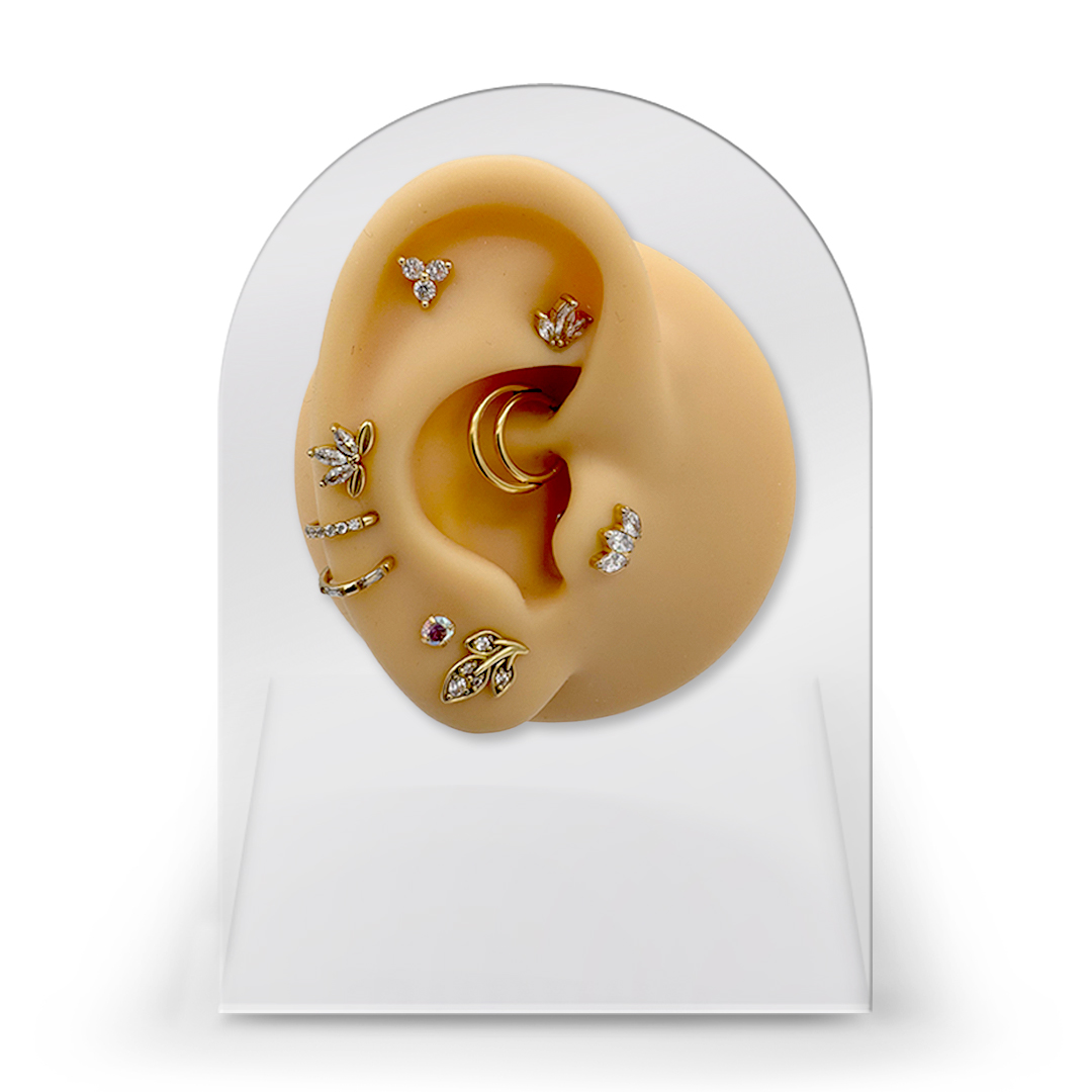 Descrizione Prodotto: Presentiamo il nostro esclusivo bundle natalizio, perfetto per ogni piercer, gioielleria o per un regalo speciale a se stessi. Il bundle include un orecchio in silicone di altissima qualità, supportato da un elegante piedistallo in plexiglass trasparente ultra lucido. Questo orecchio è ideale per fare pratica molte volte grazie alla sua capacità di simulare realisticamente le cartilagini naturali.