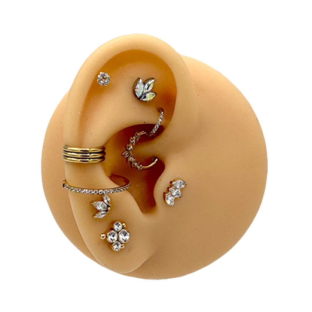 Scopri il nostro bundle piercing professionale, ideale per piercer, gioiellerie e appassionati del settore. Questo kit con orecchio lux oro di alta qualità include un orecchio in silicone realistico con un elegante supporto in plexiglass trasparente ultra lucido, perfetto per esposizione e pratica. Ideale per chi desidera perfezionare le proprie tecniche o esporre al meglio i propri gioielli da piercing.