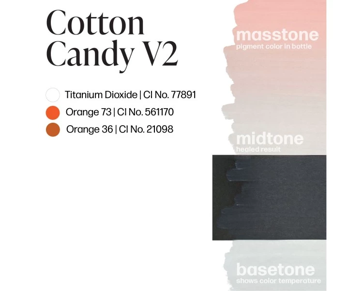 Cotton Candy è un pigmento rosa chiaro ad altissima coprenza, grazie all’elevata presenza di biossido di titanio, che lo rende uno dei migliori modificatori dell’intera linea Luxe.