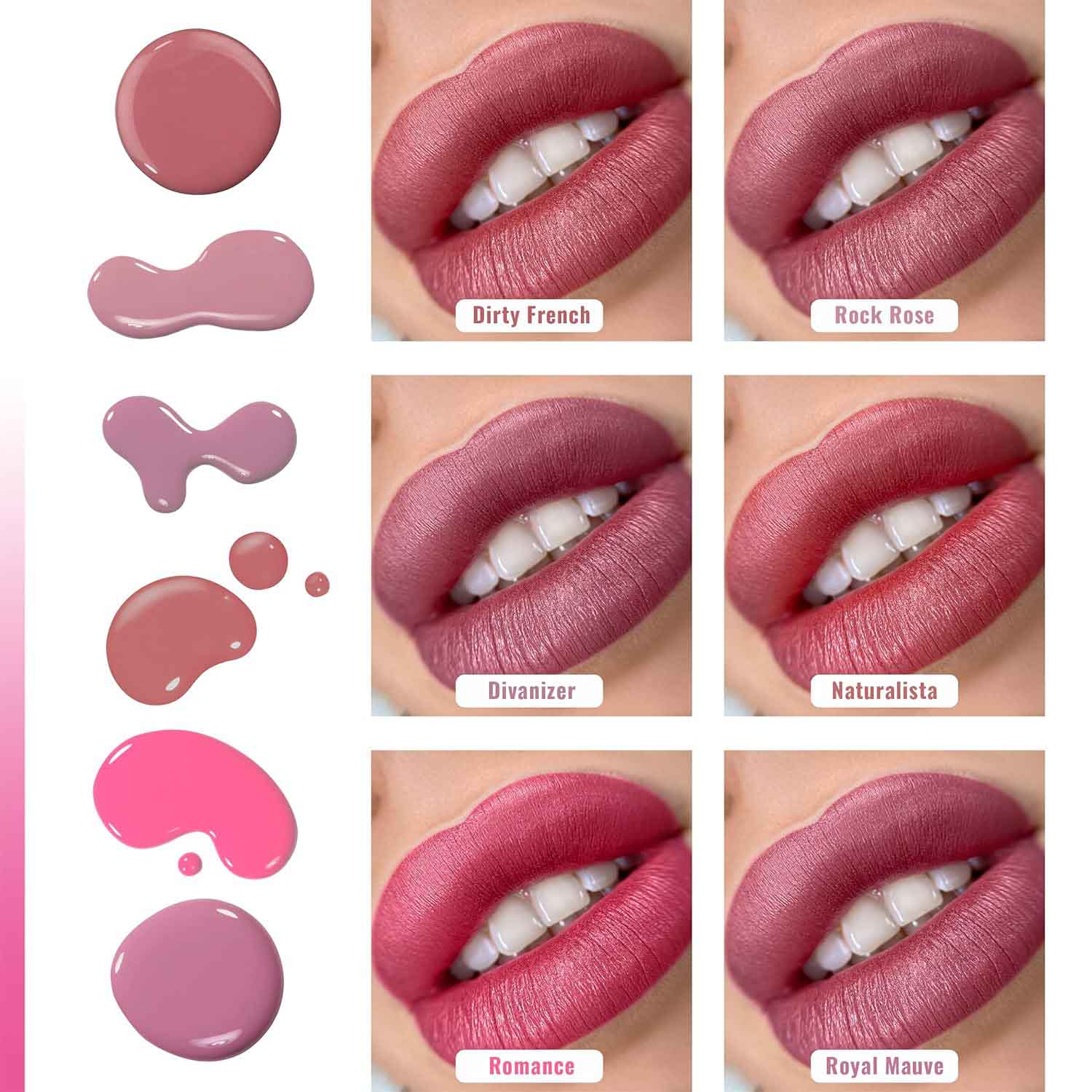 - Tonalità: 6 rosa e nude naturali