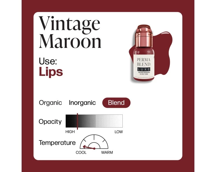 Vintage Maroon è un pigmento labbra marrone scuro ruggine, profondo e avvolgente, caratterizzato da bassa opacità e da una resa cromatica ricca e intensa.