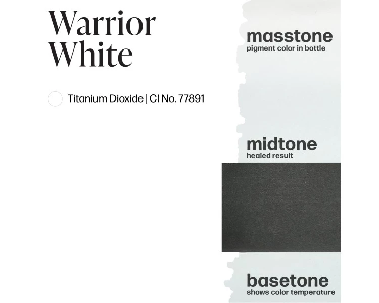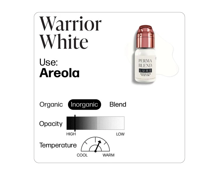 Warrior White è un pigmento bianco ad alta opacità, sviluppato specificamente per il restauro e la ricostruzione dell’areola, dove controllo del valore, coprenza e stratificazione sono fondamentali.