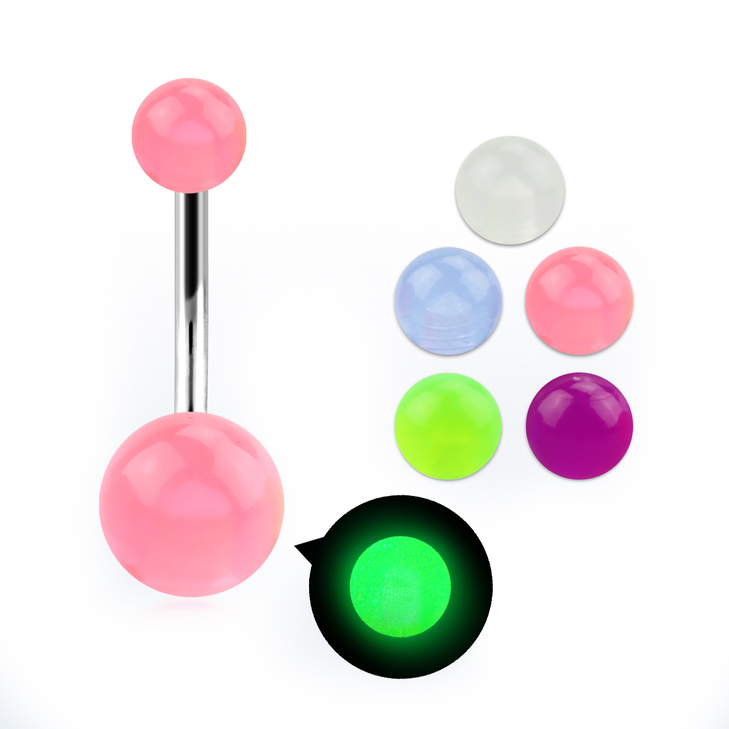 Illumina le tue notti (e il tuo stile) con il S Belly Glow, il piercing per ombelico perfetto per chi ama distinguersi anche al buio! Realizzato con barretta in acciaio chirurgico 316L e sfere acriliche fosforescenti glow in the dark, questo gioiello unisce leggerezza, resistenza e un effetto luminoso sorprendente.
