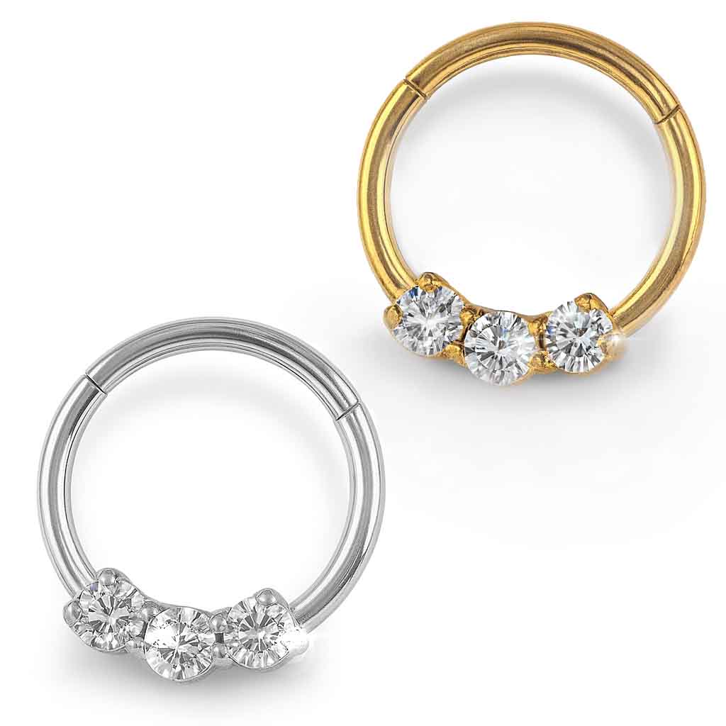 S Clicker Trilogy – Clicker con Tre Zirconi in Acciaio Chirurgico 316L – Eleganza e Stile Unico