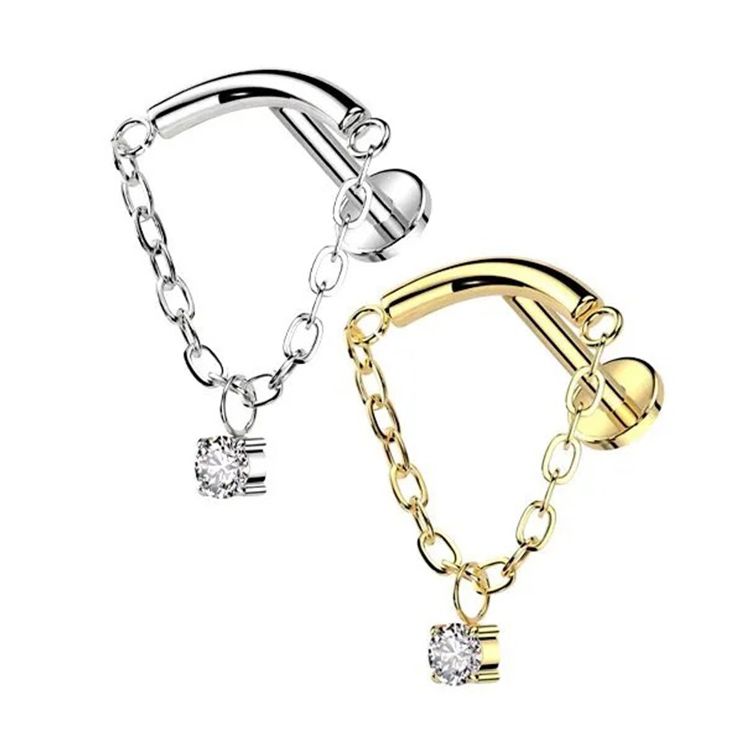 Il T Labret Diana con catenina e punto luce è un gioiello elegante in titanio o acciaio 316L.