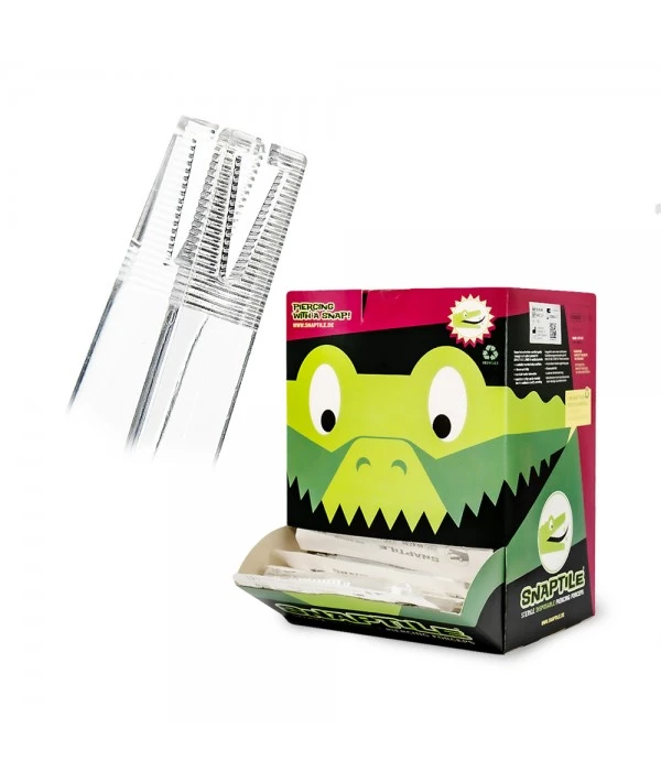 SNAPTILES sono pinze da piercing veloci e facili da usare, che le rendono lo strumento perfetto per tutti i piercer professionisti. Ogni confezione contiene 100 pinze che sono state sottoposte a sterilizzazione EO certificata. Ciò garantisce che lo strumento sia completamente sicuro e pronto per l’uso.