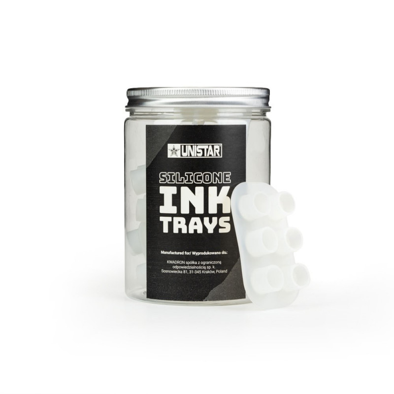 Tappi per inchiostro in silicone, confezionati in un comodo barattolo con tappo a vite. La confezione contiene 12 pezzi.