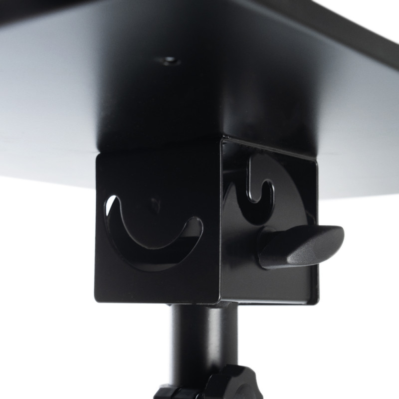 L’assistente per tatuaggi si basa su una base a tre gambe solida e stabile. Ha una regolazione in altezza nell’intervallo 75-125 cm. Il piano di lavoro in metallo è rifinito con un piccolo bordo, garantendo che gli oggetti appoggiati su di esso non cadano durante il lavoro.