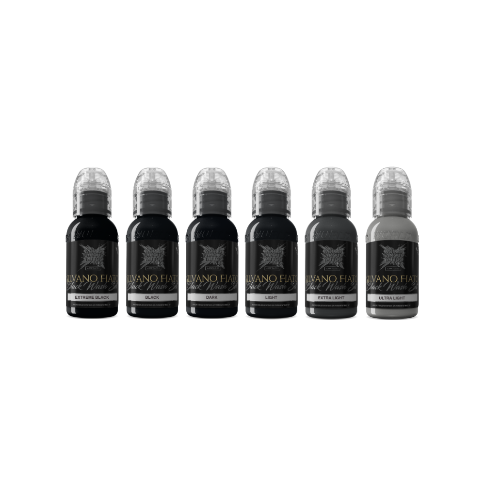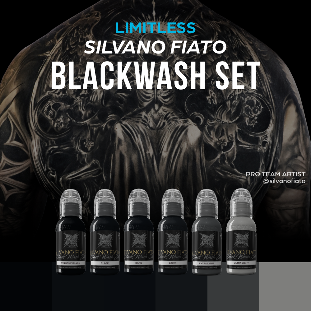 Il set World Famous Limitless BlackWash è stato progettato dal membro del World Famous Ink Pro-Team Silvano Fiato e contiene i seguenti colori: